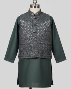 সেট অন্তর্ভুক্ত: একটি স্টাইলিশ এমব্রয়ডারি করা কটি এবং সাথে ম্যাচিং প্রিমিয়াম কোয়ালিটি পায়জামা-পাঞ্জাবি সেট।